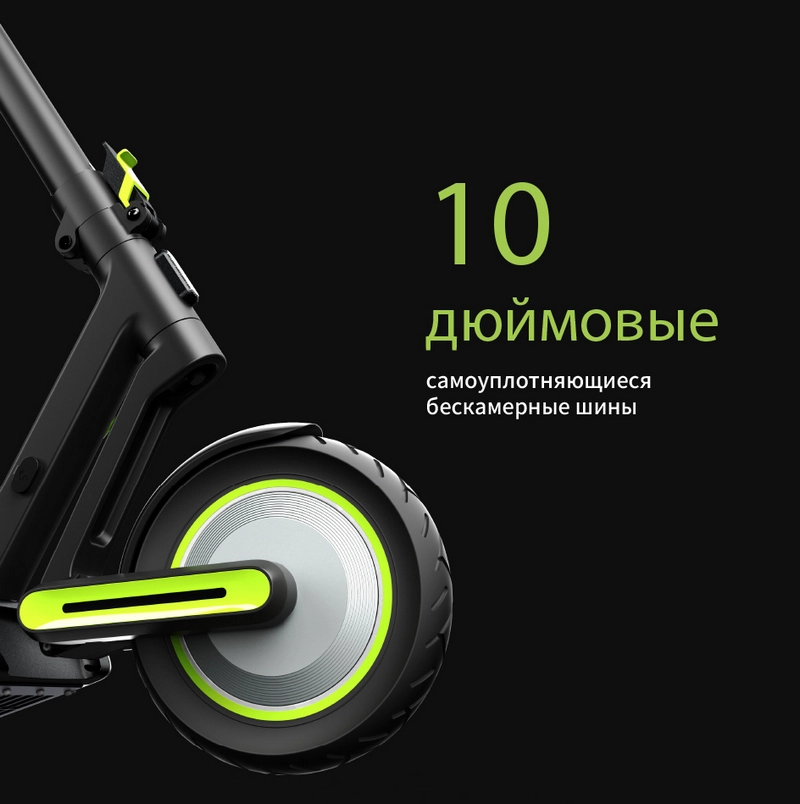 Пневматические шины диаметром 10 дюймов обеспечивают отличную проходимость и позволяют не беспокоиться о случайном проколе колеса.