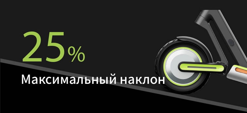 Мотор с задним приводом позволяет электросамокату преодолевать уклон до 25 градусов.
