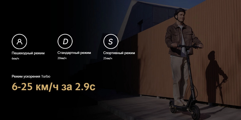 С помощью приложения NAVEE вы легко переключаетесь между пешеходным (6 км/ч), стандартным (20 км/ч) и спортивным (25 км/ч) режимами, а функция Turbo обеспечивает разгон с 6 до 25 км/ч всего за 2,9 секунды для максимальной динамики.