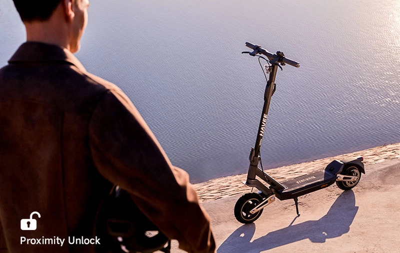 Самокат автоматически снимает электронную блокировку при вашем приближении благодаря Bluetooth-соединению со смартфоном. Когда вы отходите, блокировка включается снова — всё для вашей безопасности и комфорта, без лишних действий.