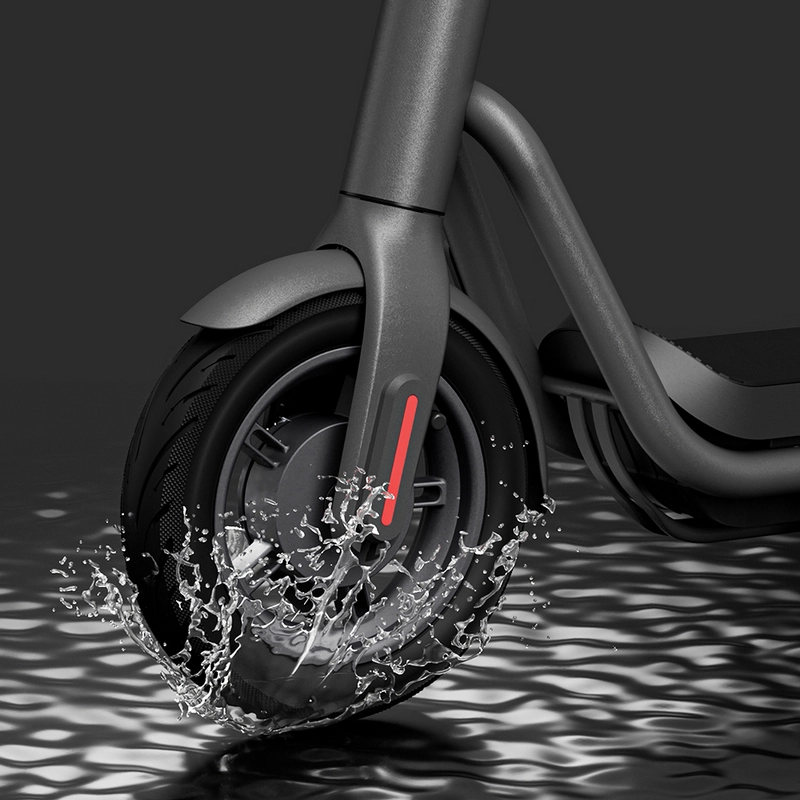 Класс влагозащиты IPX5 означает, что электросамокат защищён от струй воды с любого направления и подходит для использования даже во время сильного дождя или при проезде по лужам, не боясь повреждений электроники.