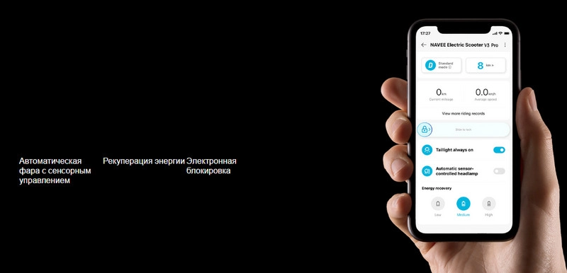 С помощью приложения NAVEE вы получаете доступ к автоматическому управлению фарой, настройке рекуперации энергии и электронному замку, что делает каждую поездку ещё удобнее и безопаснее.