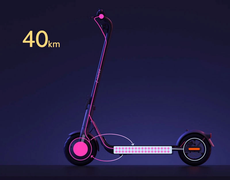Большой аккумулятор NAVEE V40 Pro позволяет ему ехать до 40 км. Система управления батареей поддерживает баланс между энергоэффективностью и производительностью.