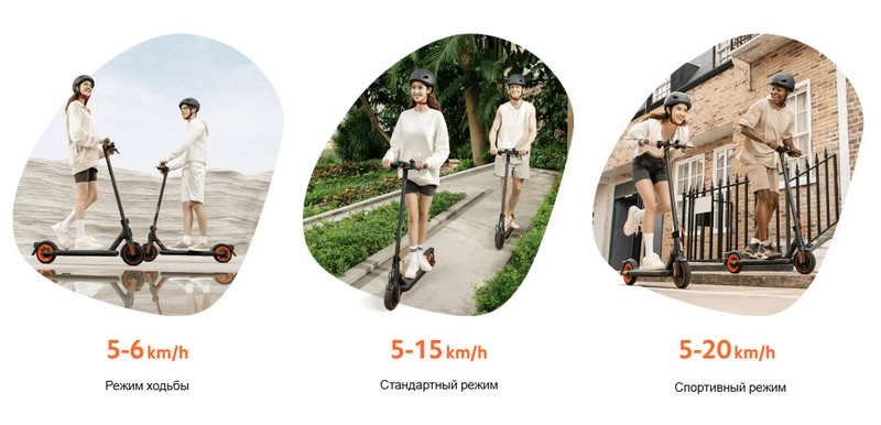 Электросамокат Xiaomi Electric Scooter 4 Go предлагает на выбор три режима скорости, адаптированные под разные условия поездки. Медленный пешеходный режим 5—6 км/ч создан для безопасного передвижения среди людей. Стандартный режим 5—15 км/ч оптимален для ежедневных поездок по городу. Для любителей скорости предусмотрен спортивный режим до 20 км/ч, который подарит ощущение динамичного катания при оптимальном энергопотреблении.