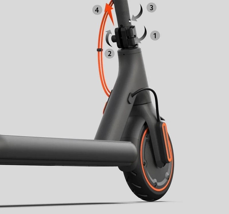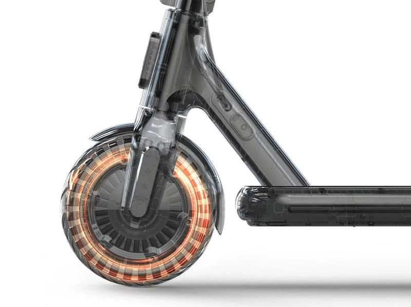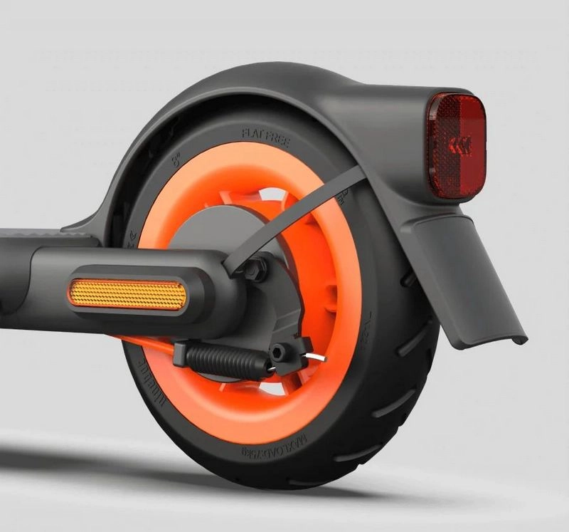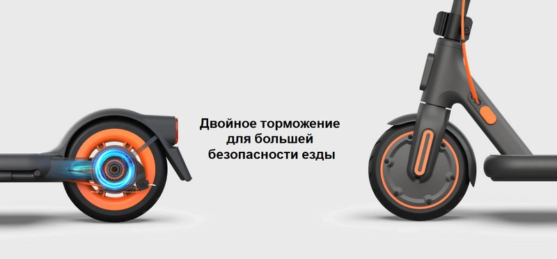 Переднее колесо оснащено электрическим тормозом, а заднее — барабанным тормозом. Такая комбинация обеспечивает мгновенную остановку и сокращает тормозной путь.