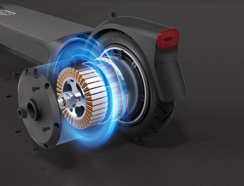 Электросамокат оснащён бесщёточным мотором мощностью 400 Вт (с пиковой мощностью 1000 Вт) и 48-вольтовой батареей, что обеспечивает плавный разгон и уверенное преодоление подъёмов до 22%. Задний привод гарантирует отличную устойчивость и контроль на любом дорожном покрытии, делая поездки комфортными и безопасными.