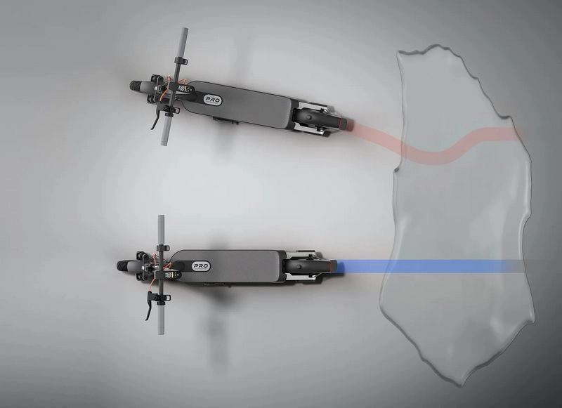 Xiaomi Scooter 5 Pro оснащён комбинированной системой амортизации: передние двойные пружинные амортизаторы и задний одинарный работают согласованно, эффективно поглощая вибрации и смягчая удары от неровностей дороги.