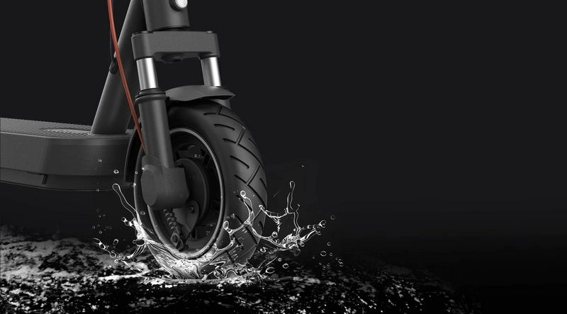 Защита самоката по стандарту IPX5 позволяет вам не останавливать движение во время дождя.