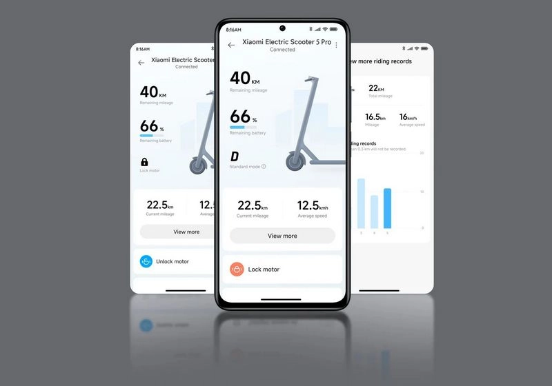 Приложение Xiaomi Home позволяет отслеживать состояние самоката, уровень заряда и другие параметры. Через него можно заблокировать двигатель, настроить освещение и обновить прошивку для ещё большего удобства.