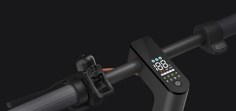 Удобно расположенный дисплей показывает скорость, уровень заряда, сигналы поворота и другие данные в реальном времени, обеспечивая полный контроль над поездкой.