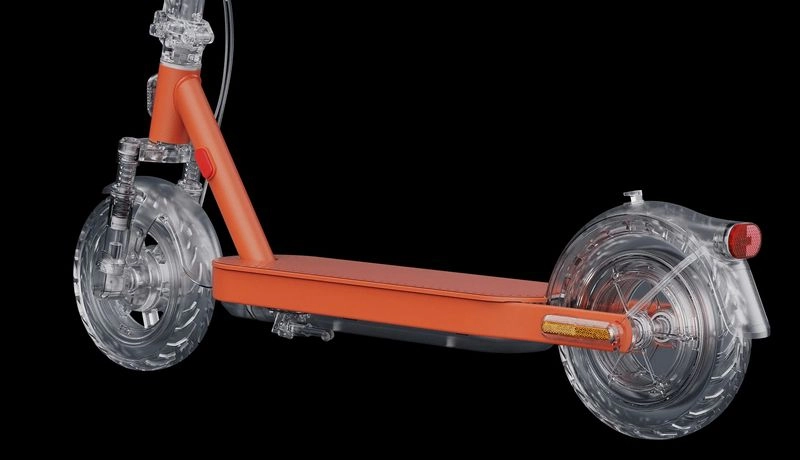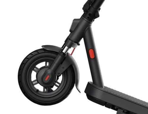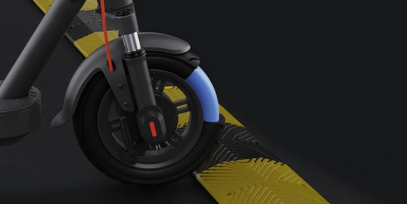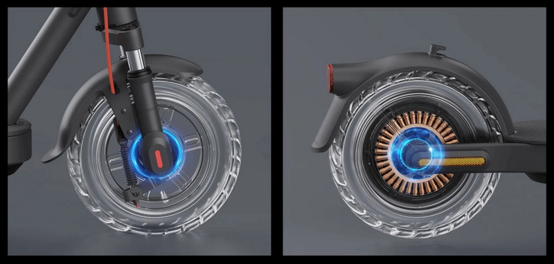 10-дюймовые бескамерные шины с низким сопротивлением качению обеспечивают лучший дорожный просвет, стабильность в поворотах и увеличивают запас хода по сравнению с обычными покрышками.