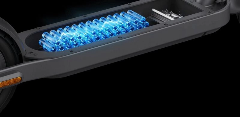 Электросамокат оснащён интеллектуальной системой управления батареей, которая обеспечивает комплексную защиту от короткого замыкания, перегрузки, перезаряда и чрезмерного разряда, а также предотвращает перегрев и автоматически активирует режим ожидания при низком напряжении, гарантируя безопасность и долговечность аккумулятора.