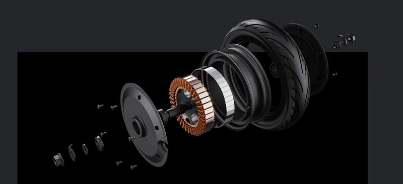 Электросамокат оснащён бесщёточным мотором мощностью 400 Вт с датчиками Холла, что обеспечивает высокую эффективность, тихую работу, быстрый разгон и плавный контроль скорости.