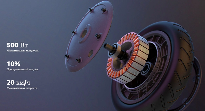 Электросамокат развивает скорость до 20 км/ч, справляется с подъёмами до 10% и обладает максимальной мощностью в 500 Вт — всё для уверенной и комфортной городской езды.