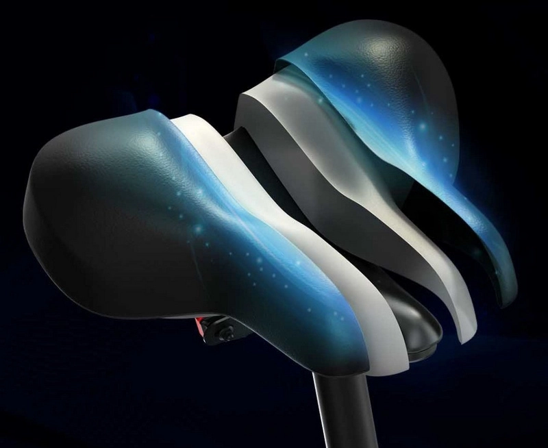 Широкое седло с мягким амортизирующим слоем смягчает удары и обеспечивает комфорт в длительных поездках.
