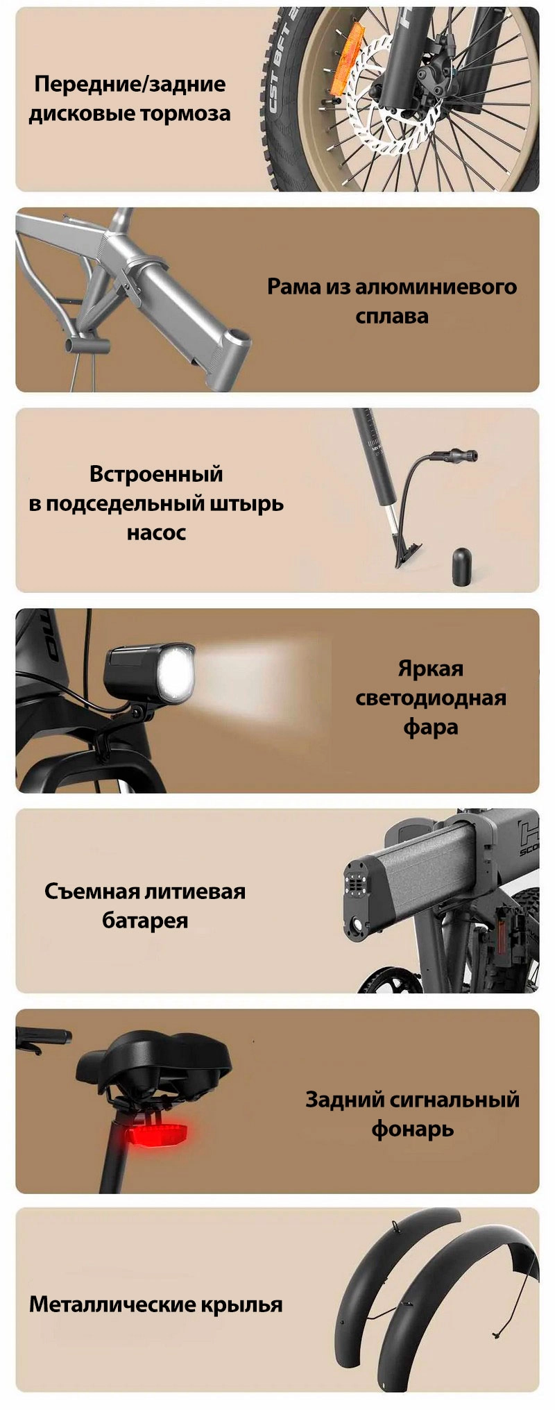Электровелосипед HIMO ZB20 — фэтбайк с электроприводом и трансмиссией Shimano. Скорость до 25 км/ч, запас хода в комбинированном режиме до 80 км, а на электроприводе до 60 км. Легко проходит по снегу, песку и горным тропам. Компактный размер и стильный дизайн оценят городские жители.