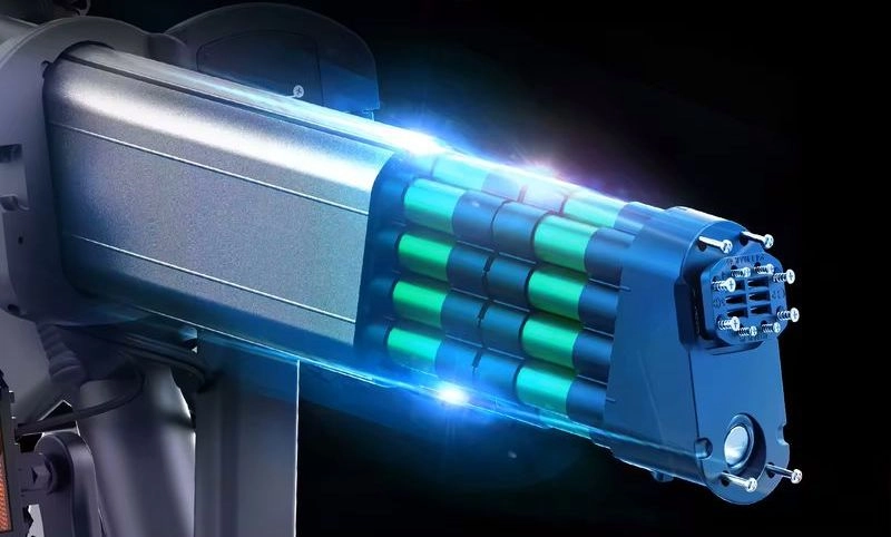 Мощный легкий аккумулятор позволяет ехать до 55 км на одном заряде, а съемная конструкция упрощает его зарядку и замену. Для полного заряда аккумулятору требуется 3 часа, батарея рассчитана на 500+ циклов заряда/разряда.