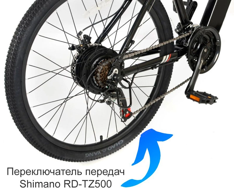 У велосипеда установлена надежная система передач Shimano. Передняя система Shimano SL-TX50R-7, а задняя Shimano RD-TZ500.