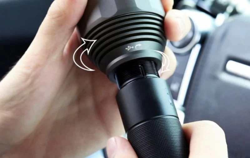 Для защиты разъема для зарядки от попадания воды и пыли оно надежно спрятано в корпусе фонарика.