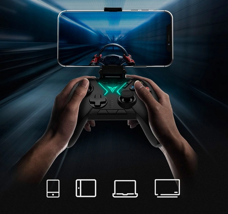 Геймпад оснащен съемным регулируемым держателем для смартфона. Он рассчитан на устройства с диагональю от 3,5" до 6,8".