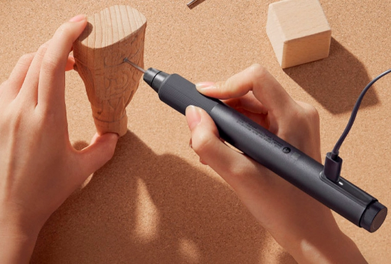 Электрический гравер Xiaomi Mijia Electric Grinding Pen 16 in 1 MJDMB001QW сочетает лёгкий вес, компактность и прочный корпус. Алюминий с анодированным покрытием защищает от царапин и загрязнений, а прорезиненная вставка предотвращает скольжение. Весит всего 310 г при диаметре 2 см, что позволяет уверенно контролировать движения. Дополнительное удобство создаёт защита от перекатывания, снижающая риск падения со стола.