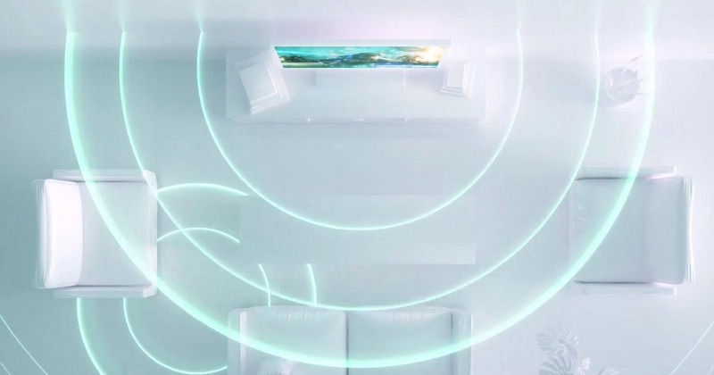 Сочетает в себе 4К-проектор и небольшой саундбар.