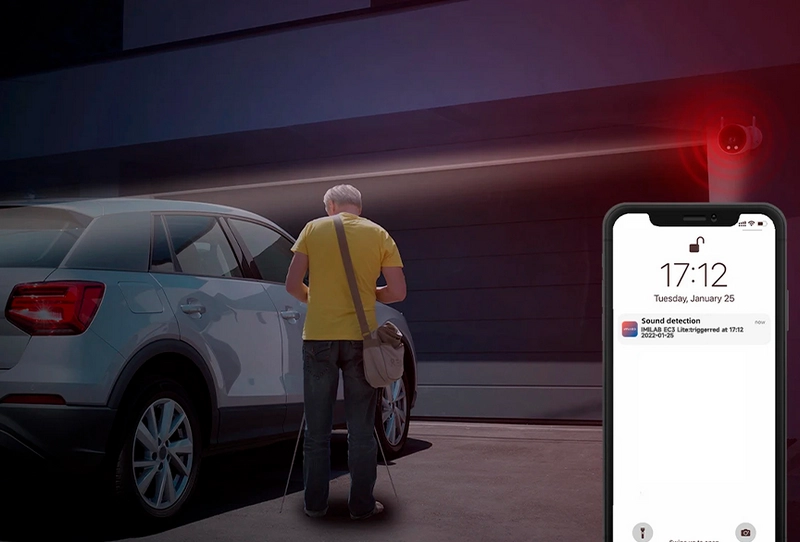 Камера может работать в режиме охраны и включать свето-звуковую сигнализацию при обнаружении движения в зоне наблюдения. Одновременно с включением сигнализации отправляется уведомление в приложение.