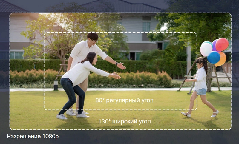 Высокое разрешение и широкий угол обзора позволяют камере захватывать в кадр всё, что происходит вокруг вашего дома.