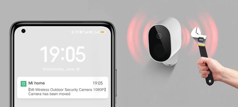 Камера надежно крепится к стене и оснащена встроенным гироскопом. При обнаружении любых подозрительных действий она моментально отправляет оповещение на смартфон. Эта функция может быть отключена для переноса или зарядки камеры.