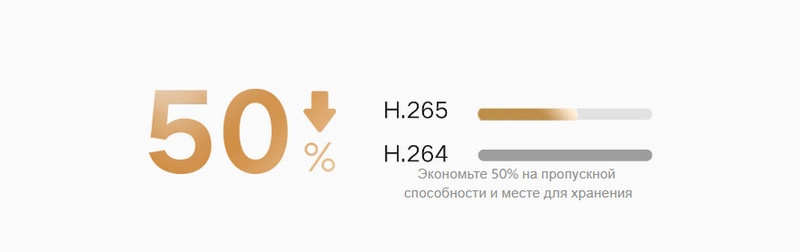 Все записи сжимаются кодеком H.265, который позволяет сэкономить до 50% места в вашем хранилище.