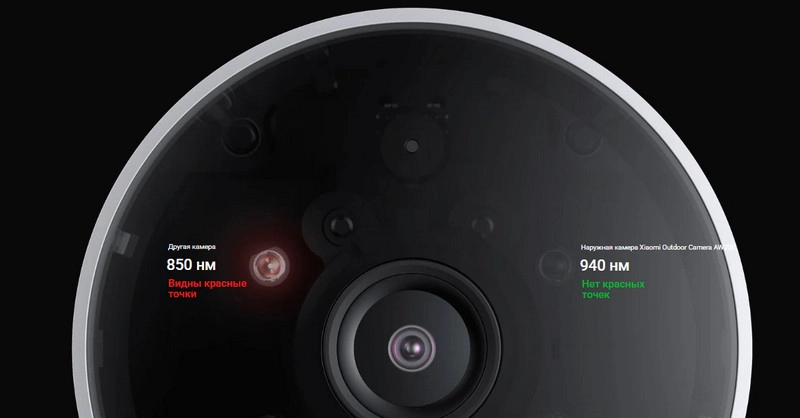 Для четкой съемки в полной темноте в камере AW200 используется инфракрасное ночное видение с длиной волны 940 нм, которое исключает появление красных точек на записи.