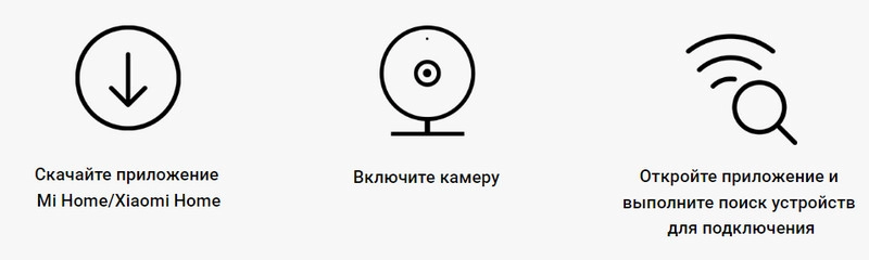 Для начала работы необходимо скачать приложение Mi Home, включить камеру и следовать инструкциям на экране смартфона.