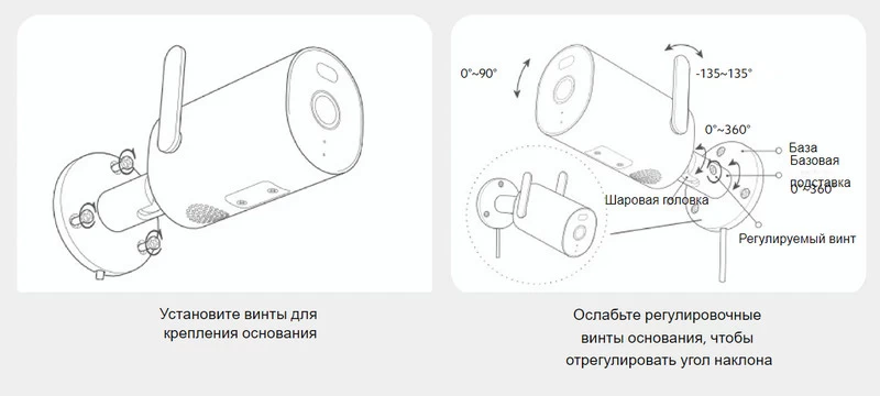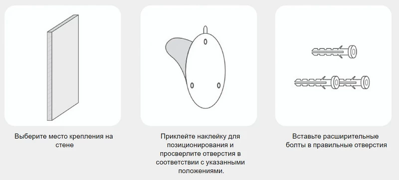 В комплекте с камерой поставляется специальная наклейка для позиционирования, которая поможет просверлить отверстия для крепления камеры к стене.