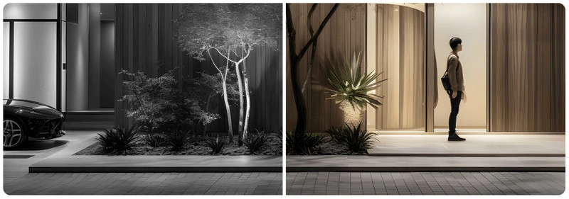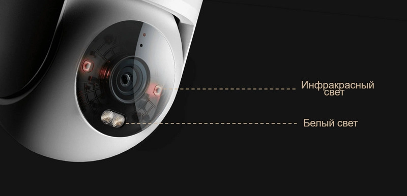 Камера может вести полноцветную ночную съемку с белой подсветкой на расстоянии до 10 метров или черно-белую съемку на больших расстояниях с ИК-подсветкой. При обнаружении человеческой фигуры автоматически включается белая подсветка для цветной записи.