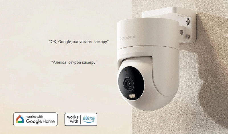 Камера работает с ассистентами Amazon Alexa, Google Assistant, Алиса и поддерживает голосовое управление.