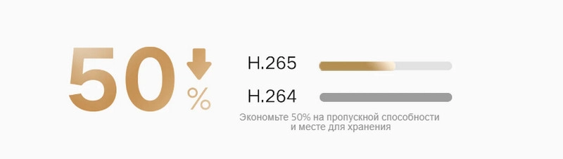 Камера автоматически кодирует записи с помощью кодека H.265, который экономит до 50% места без потери качества.