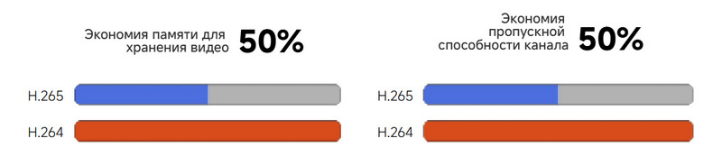 Формат H.265 снижает нагрузку на сеть и экономит место для хранения, передавая видео в том же качестве при меньшем битрейте.