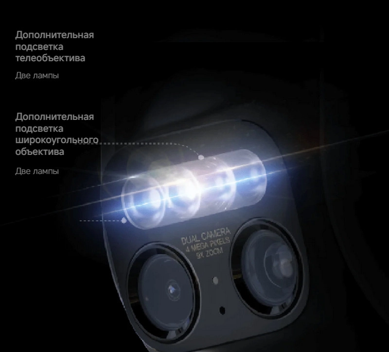 Два объектива по 4 Мп формируют изображение в формате 2,5K Ultra-HD. Даже при увеличении кадры остаются яркими и детализированными, позволяя рассмотреть мельчайшие детали.