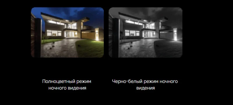 Светосильная оптика f/1.6 и четыре встроенных прожектора позволяют вести цветную съёмку даже в темноте. При движении ночью автоматически включается дополнительная подсветка.