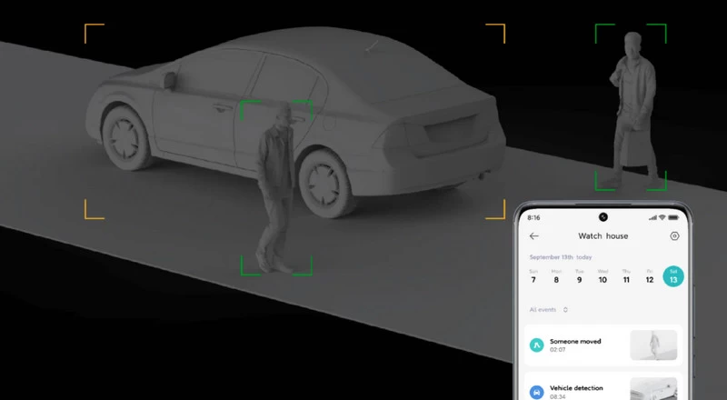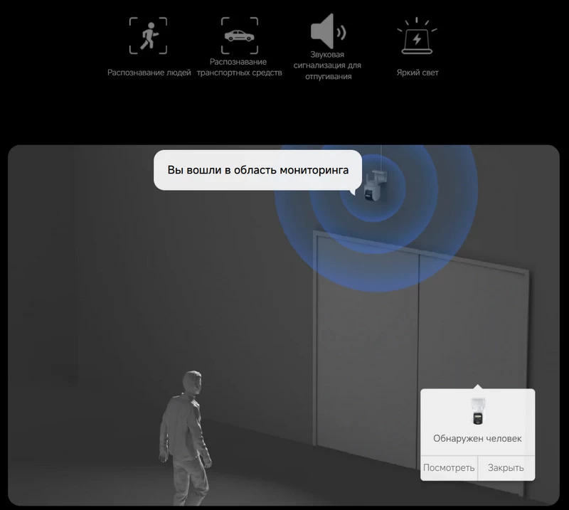 Локальные алгоритмы различают людей и транспорт, уменьшая количество ложных срабатываний. Камера сразу запускает запись и отправляет уведомление владельцу.