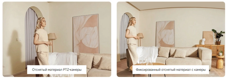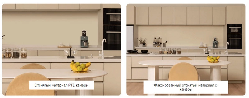 Система сочетает 6 мм PTZ-объектив для детализированной съёмки удалённых объектов и фиксированный 2.8 мм объектив для панорамного обзора. Это позволяет наблюдать за общим пространством и приближать нужные участки без потери качества.