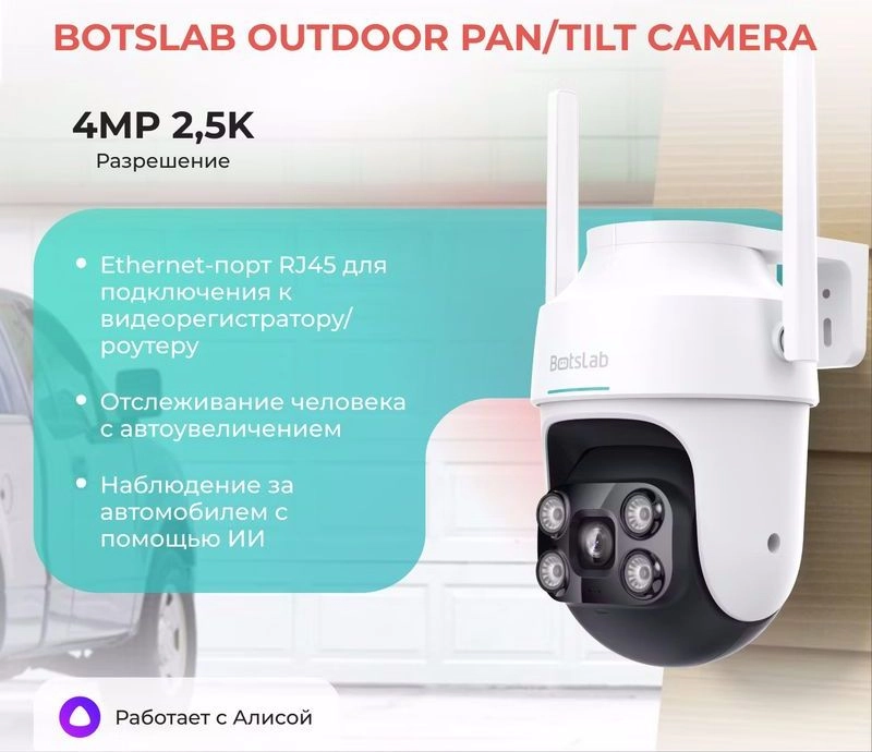Управлять камерой и просматривать отснятые записи можно в удобном фирменном приложении. Также Botslab Outdoor Pan/Tilt Camera Pro работает со всеми популярными голосовыми ассистентами умного дома.