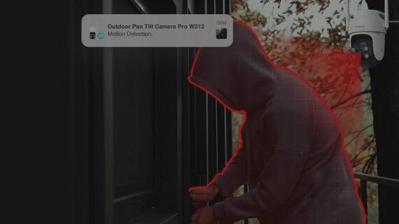 Камера видеонаблюдения Botslab Outdoor Pan/Tilt Camera Pro (W312) EU — уличная камера наблюдения с двойным подвесом и отсутствием слепых зон. Два режима ночной съемки, охранный режим и съемка с разрешением 2,5K.