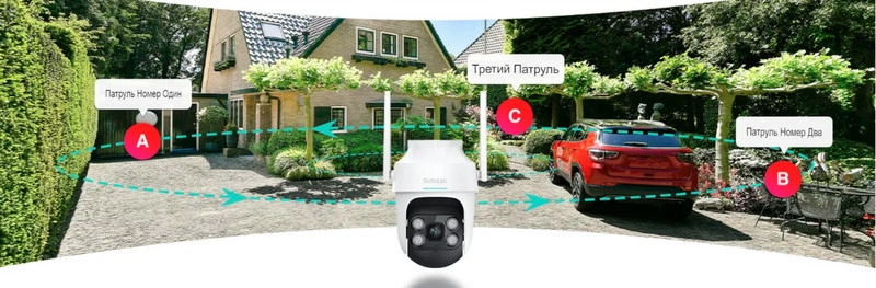 В режиме патрулирования камера вращается в заданном диапазоне и отслеживает всё, что происходит вокруг. При обнаружении человека в зоне патрулирования будет отслеживать его перемещение.