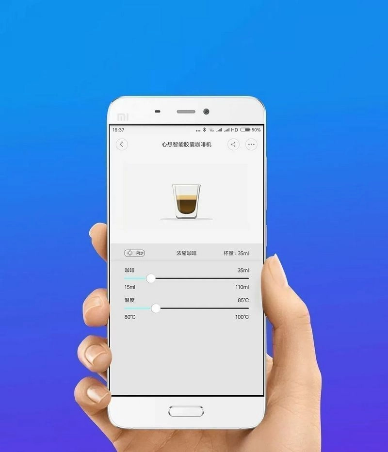 Подключите кофемашину к приложению MiHome и регулируйте температуру нагрева, количество воды и режим по своему желанию.