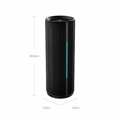 Колонка оснащена акустической системой из пяти модулей, создающей всестороннее стереозвучание. Низкочастотные вибрации обеспечивают глубокие басы, а круговая конструкция на 360° равномерно распределяет звук. Максимальная громкость достигает 93 дБ, что позволяет наслаждаться мощным и чистым звучанием в любых условиях.