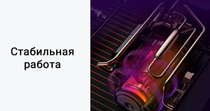 В кондиционере установлен инверторный компрессор постоянного тока, он отличается высоким уровнем энергосбережения и длительной стабильной работой. А трубчато-ребристая структура теплообменника эффективно и быстро охлаждает и нагревает воздух.