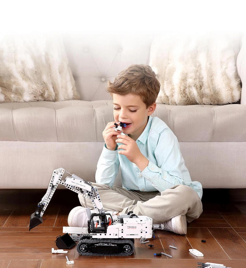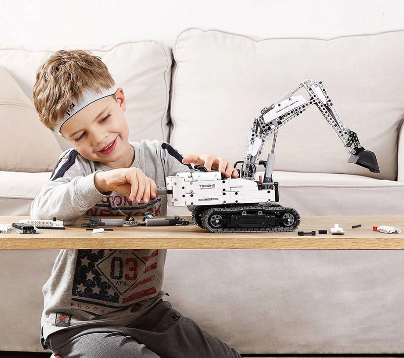 Конструктор-экскаватор ONEBOT Excavator Building Blocks GCWJJ01IQI — полезная игрушка для детей от 8 лет, которая развивает логику, пространственное мышление, мелкую моторику и знакомит с основными принципами механической передачи.