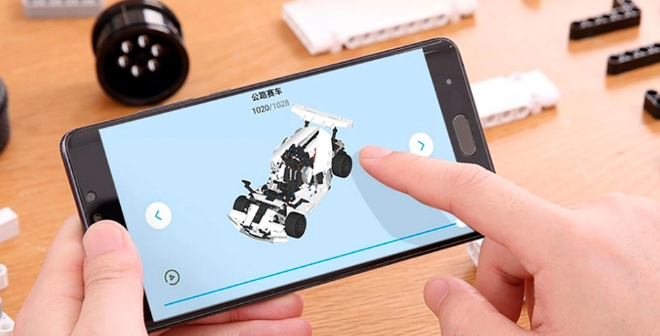 Для создания гоночного автомобиля из Mi Smart Blocks используется объемная система помощи при сборке, позволяющая с разных углов взглянуть на процесс в его мельчайших деталях или даже поэкспериментировать с соединениями еще в самом начале приключения.