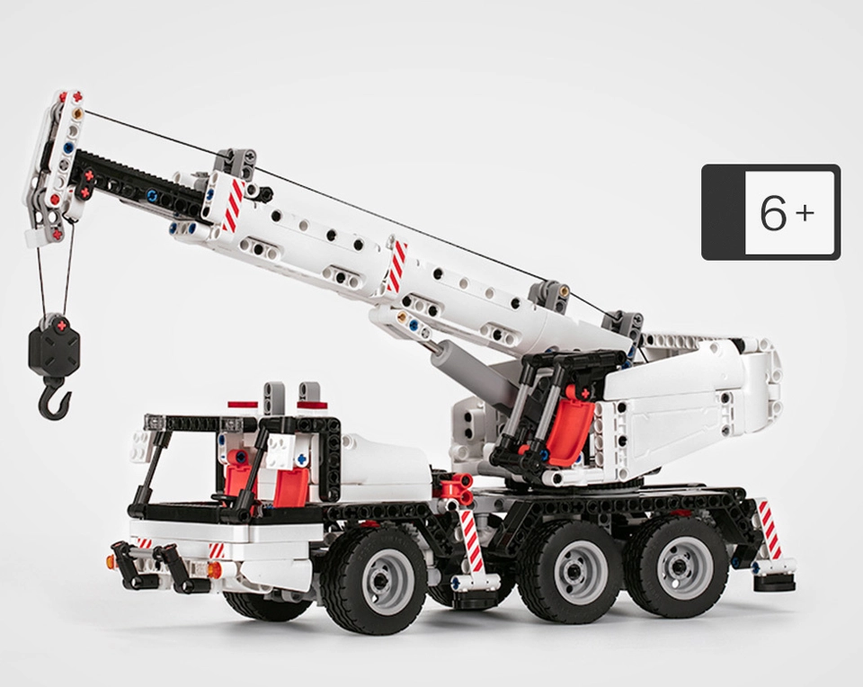 Каждая деталь сделана с высокой точностью (приблизительное расстояние между деталями – 0.005 мм). Такая точность обеспечивает четкую и слаженную работу всех механизмов автокрана и продлит срок эксплуатации игрушечного автокрана.